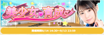 現開催中の美少女育成ですが、開催期間が【9月13日(月) 23:59まで】となります。
