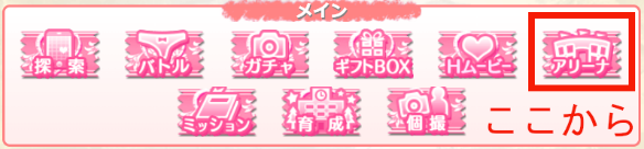 しかし、パソコンでプレイしている方は『メニュー』から『アリーナ』のアイコンを押さなくてはいけません。