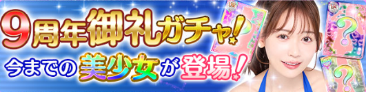 9周年御礼ガチャは、DMMポイントではなく、同時開催のミスコン撮影会を攻略して入手する『9周年御礼ガチャチケット』にて引くことができます。