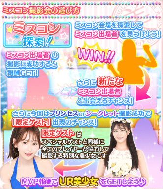 スペシャルゲストと同様に全プレイヤーが協力して撮影する特別な美少女のため、仲間と力を合わせて撮影成功を目指しましょう。