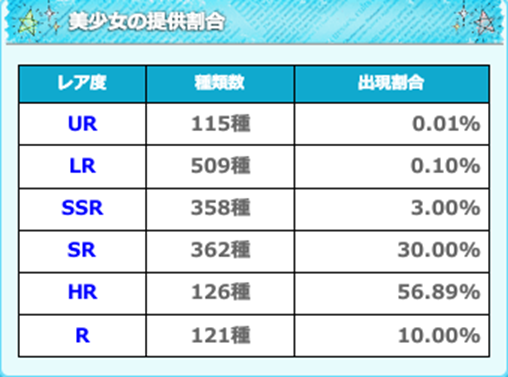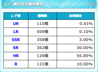 まぁでも、提供割合を見ると、確かにSRとHRで約87%の出現割合を占めているので、納得といえば納得ですね。