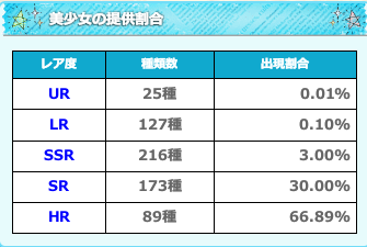 ただし、SR/SSR/LR/URの出現割合自体は変わっていないため、高レアの美少女を入手するのはなかなかに大変といえるでしょう。