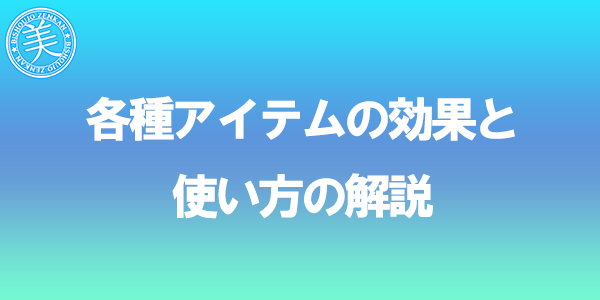 唐突ですが、今回はそんな方々のために『各種アイテムの使い方』についてご紹介をしていこうかなと思います!