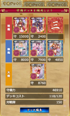 『段位戦』は対人戦となるのですが、守備デッキを3つ編成しなければ挑戦そのものができません。