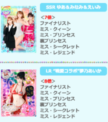 本キャンペーンで入手できる「ゆあ&みなみ&えいみ」と、コラボガチャ産「LR ”戦愛コラボ” 夢乃あいか」は、現開催中のミスコン撮影会イベントの特効付きです。